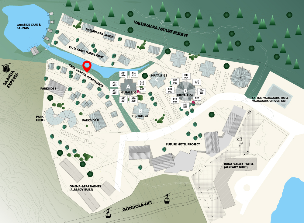 Please note that the plans for the Saarua village properties are preliminary, and Rukakeskus Oy reserves the right to make any changes. Plans and images are updated on this site without prior notice.